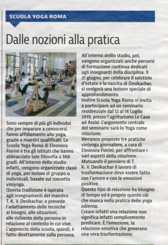 Scuola Yoga Roma oggi in edicola su la Repubblica